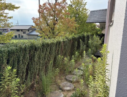 熊本市のお客様から「庭の生垣がどんどん伸びてしまって、外からの見通しが悪くなってきた」とのご相談をいただきました。