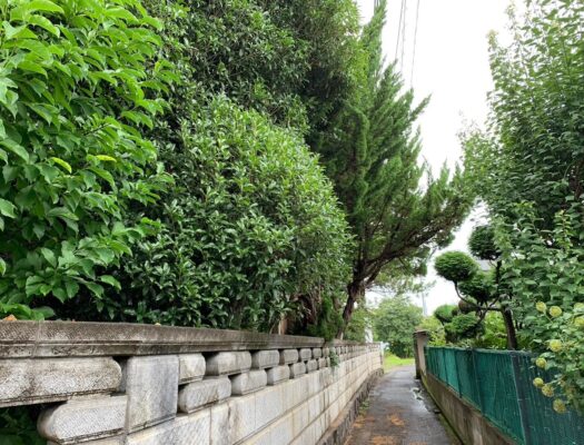 熊本市にお住まいのお客様から「庭の木が伸びすぎて、家の横の通路まで枝が出てしまって通行の邪魔になりそうだから、すぐに伐採してほしい」とご連絡をいただきました。